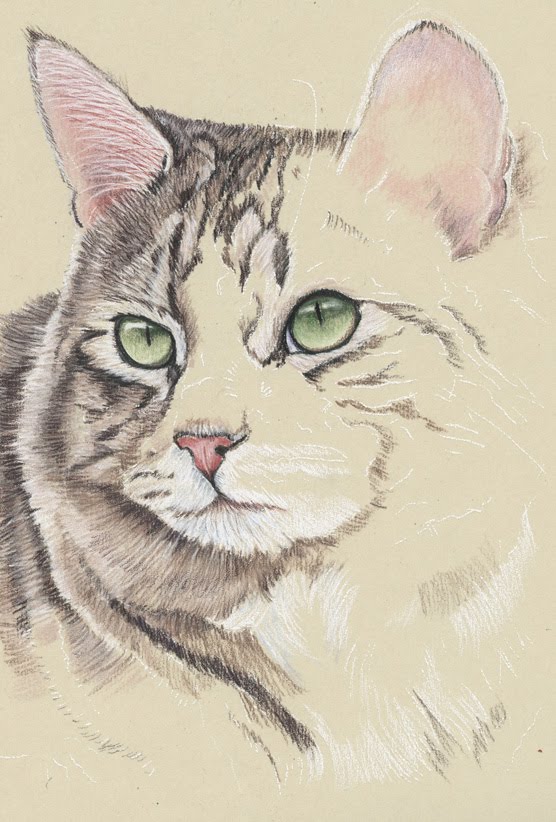 I've been taking a 'computer holiday' for the last few days. Once I finished work last week I felt that I needed a little space before moving forward with my art.Anyway I'm back now with a new cat, this time on UART Premium sanded pastel paper. The one I'm using is the 800 grade which is the finest.